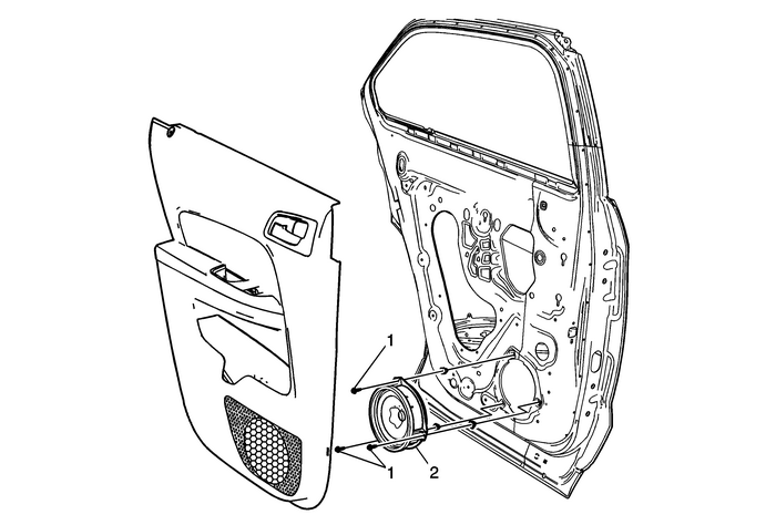 1 | Radio Rear Side Door Lower Speaker Screw(Qty:-3) Caution:Refer toFastener Caution. Tighten2.5-Y(22-lb-in) |